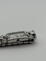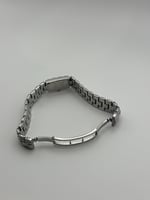 - Stainless steel bracelet with a polished, jewelry-like finish