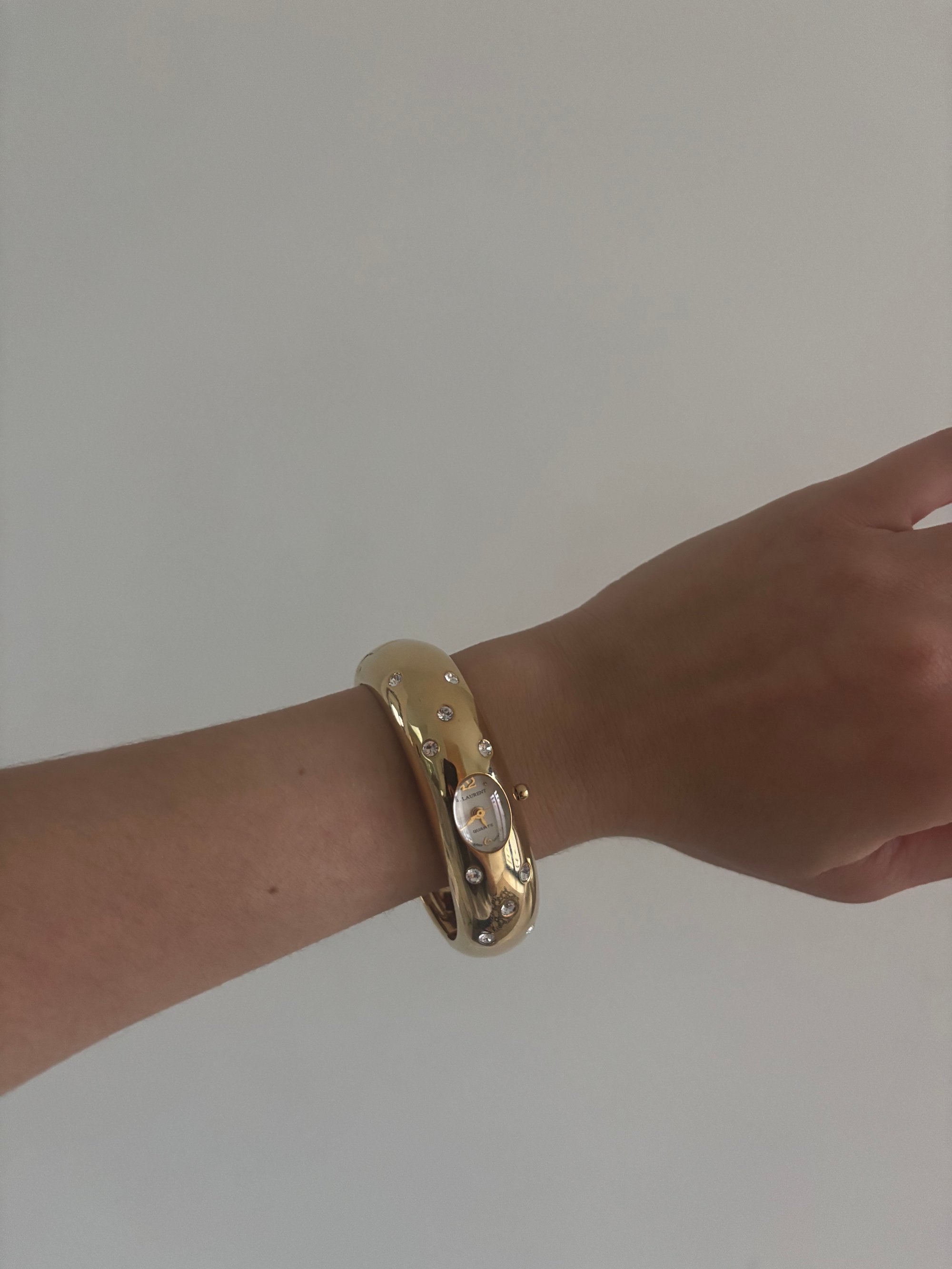 - Vintage gold-tone bangle watch by Jacques Laurent